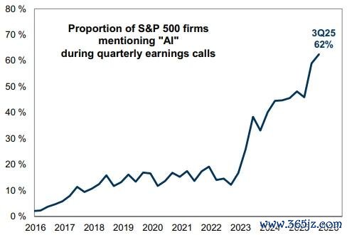 本财报季,大量标准普尔500指数成分股公司在电话会议中特别提到在生产力和效率方面使用AI的情况。高盛投资银行家的最新调查显示,企业AI采用率达到37%,而根据美国人口普查局的调查,大型企业的AI采用率为13%,尽管后者使用了更严格的定义标准。