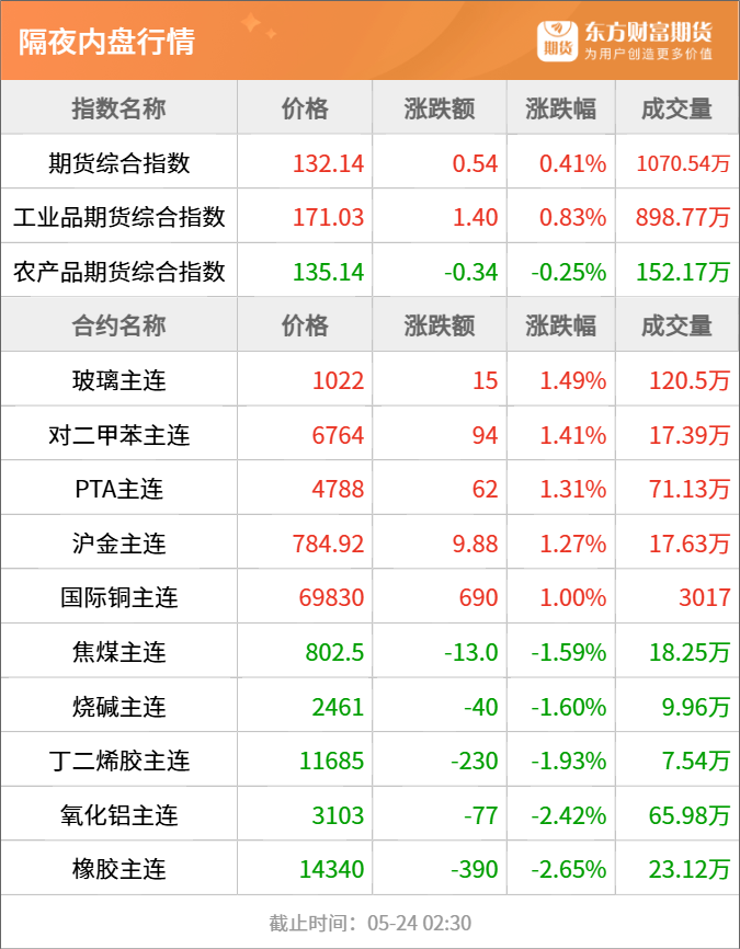 钢材:2025年5月中旬,重点统计钢铁企业共生产粗钢2199万吨,平均日产219.9万吨,日产环比下降0.3%;生铁1982万吨,平均日产198.2万吨,日产环比下降0.4%;钢材2124万吨,平均日产212.4万吨,日产环比增长1.9%。据此估算,本旬全国日产粗钢279万吨、环比下降0.3%,日产生铁239万吨、环比下降0.4%,日产钢材416万吨、环比增长1.0%。(中钢协)