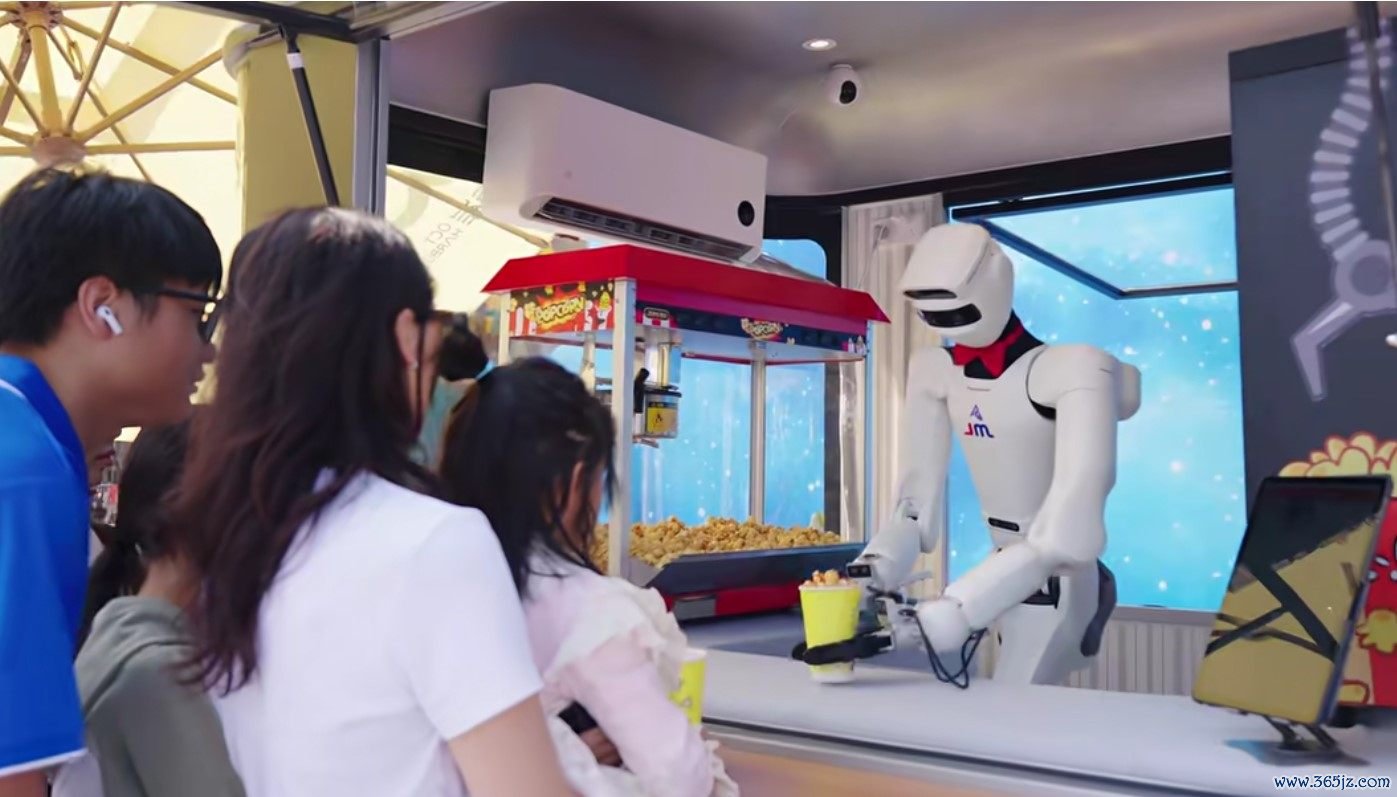 2025 年11月的中山时光奇遇游乐园,一台身形灵活的绳驱 AI 机器人正忙着接待游客:扫码下单后,它精准铲起爆米花、稳稳抓取饮料,全程无需人工干预,还会笑着送上祝福 —— 这就是全球首个绳驱 AI 机器人零售服务店 “机器人 MART” 的开业现场。